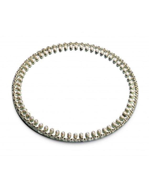 Podstawka dekoracyjna okrągła wykonana z lustra i elementów ozdobnych. Świetnie się sprawdzi jako baza do dekoracji stołu. Idealnie nadaje się do trzymania na niej świec. Bogate zdobienia sprawiają, że nada wyrazu każdemu wnętrzu.