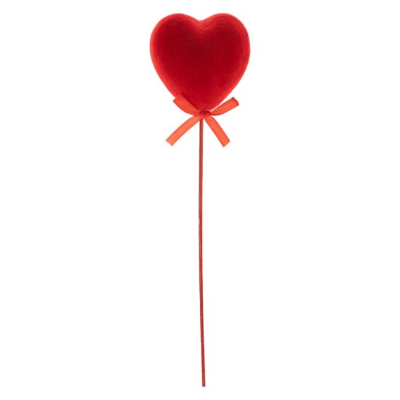 Aksamitne serce na piku to uniwersalny element dekoracyjny, który idealnie sprawdzi się nie tylko w walentynkowych aranżacjach. Wykonane z czerwonego materiału, ozdobione kokardką, stanowi efektowny akcent w bukietach kwiatowych, dekoracjach stołów czy upominkach. Wymiary produktu to 7x27 cm.