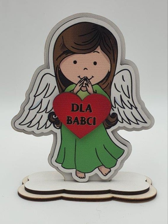 Anioł drewniany stojący 13 cm Dla Babci