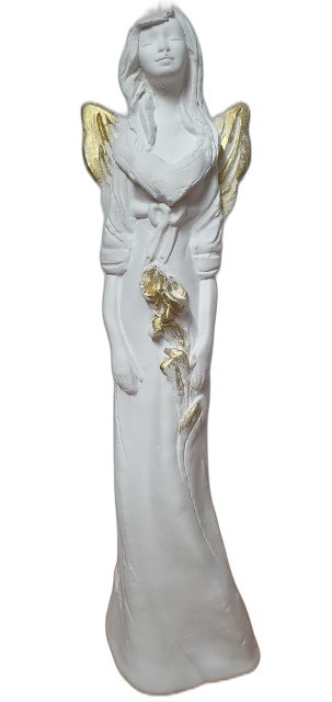 Anioł gipsowy z różą | A-37
