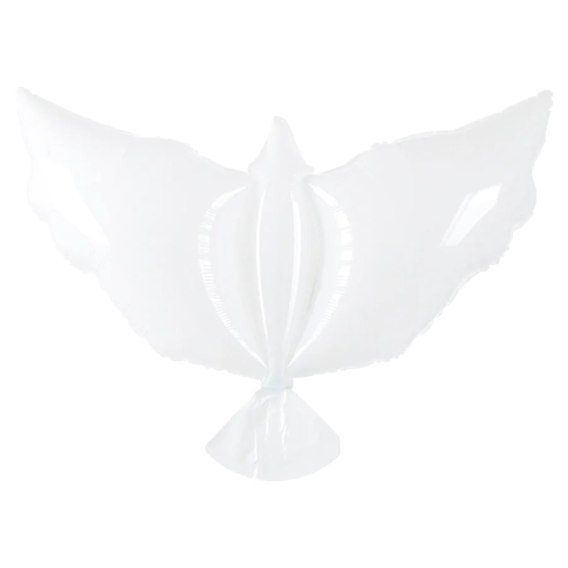 Balon foliowy w kszt.ałcie lecącego białego gołębia z szeroko rozpostartymi skrzydłami. Ciekawy element dekoracyjny na imprezach z okazji chrztu lub komunii.