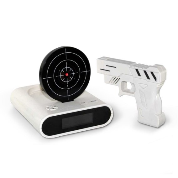 Pilot wygląda jak prawdziwy pistolet! Strzelić co rano do swojego budzika - to musi być ciekawe doświadczenie... I co najważniejsze - działa! Budzik od razu zamilknie, jeśli celnie trafisz do tarczy! Ale to nie wszystko - strzelanie do budzika będzie bardzo przyjemne i nigdy Ci się nie znudzi, bo możesz sam nagrywać dźwięki alarmu. Wystarczy wybrać melodię lub odgłos, które są dla Ciebie wyjątkowo irytujące, a pobudka będzie z pewnością skuteczna!
