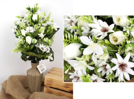 Bukiet RÓŻA, RUMIANEK wys. 50 cm (główka 5,5-7 cm) BIAŁY WTJ-1544A