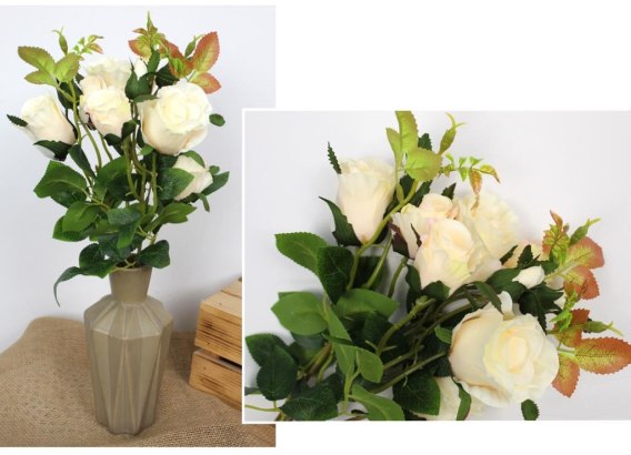 Bukiet RÓŻA wys. 40 cm 7 kwiatów (4-5 cm) i 3 pąki BIAŁA WD-115A
