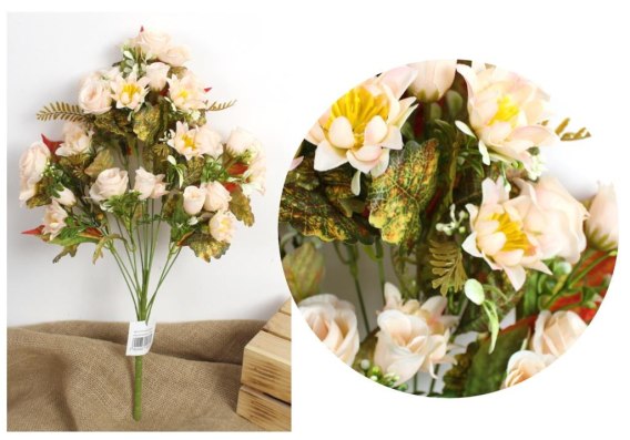 Bukiet mieszany RÓŻA, PIWONIA wys. 53 cm, 11 łodyg (33 kwiaty 3-6 cm) BIAŁY