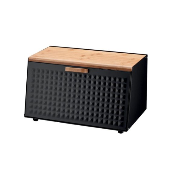 Chlebak emaliowany z pokrywą bambusową 35,5x17x19,5cm czarny | 8879