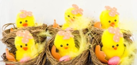 Dekoracja wielkanocna 6szt. kurczaki w koszyku 5442 Wie-0248