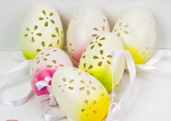 Zawieszane na sznureczku pisanki 6 cm z wstążką. Świetnie nadają się do dekoracji domu na Wielkanoc. Piękne, wiosenne kolory ożywią każde wnętrze nadając mu świątecznego klimatu.