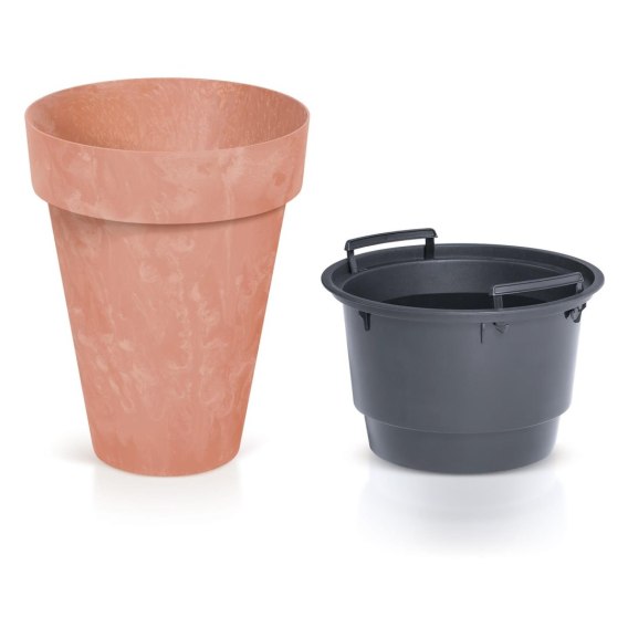 Średnica górna - 27,6 cm Wysokość - 34,9 cm Pojemność wkładu - 8 L Pojemność donicy - 12 L |