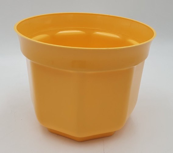 Doniczka w kolorze złotym wykonana z tworzywa sztucznego imitującego ceramikę. Doskonale dopasuje się do każdego wnętrza.