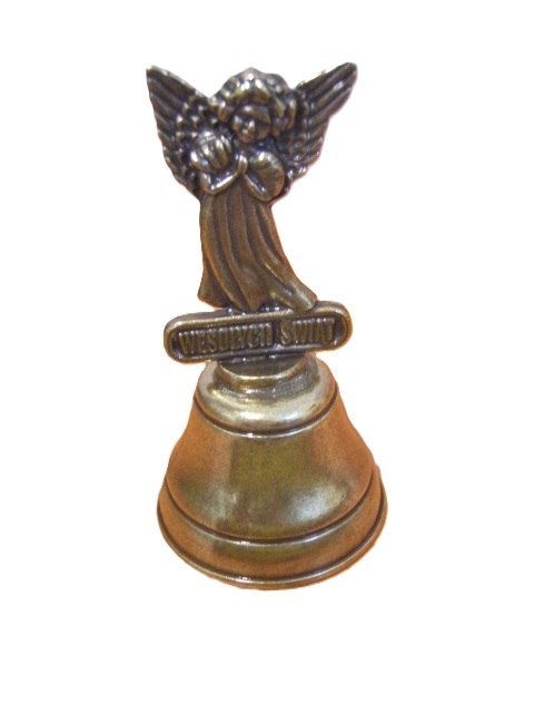 Dzwonek metalowy z aniołkiem Wesołych Świąt