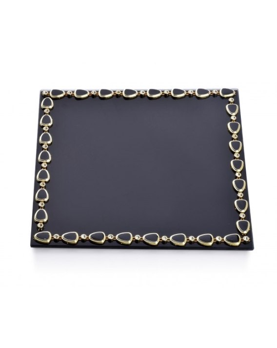 Podstawka dekoracyjna wykonana z lustra i elementów ozdobnych. Świetnie się sprawdzi jako baza do dekoracji stołu. Idealnie nadaje się do trzymania na niej świec. Bogate zdobienia sprawiają, że nada wyrazu każdemu wnętrzu.