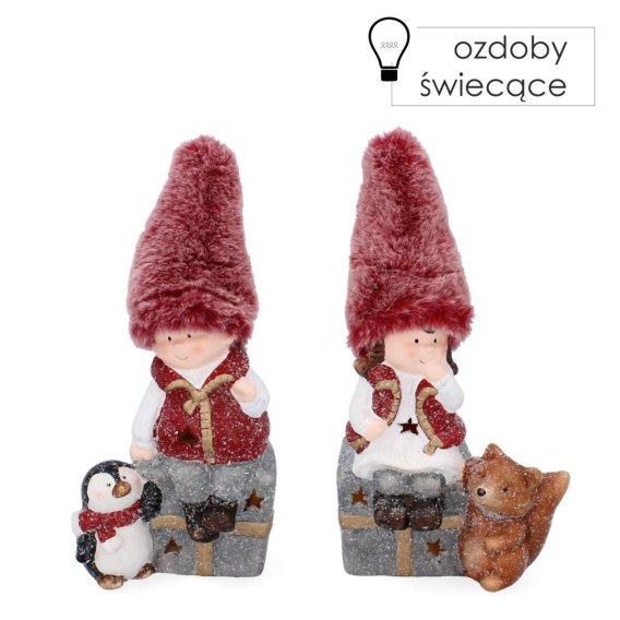 Figurka dziewczynka chłopak z liskiem i pingwinkiem na prezencie led 19,5cm