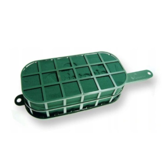 Gąbka, pianka cegła florystyczna do kwiatów żywych zabudowana klatką, stelażem z rączką.