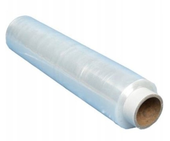Bezbarwna folia spożywcza PVC na rolce, przeznaczona do pakowania produktów spożywczych.