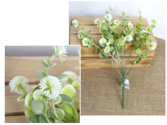 Gałązka 2szt liści z BIAŁYMI KWIATAMI wys. 33 cm 7 łodyg MD-067A