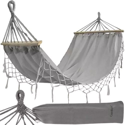 ? KOMFORTOWY - ten niezwykle wygodny i funkcjonalny hamak pozwoli Ci na relaks w dogodnych warunkach. Świetnie sprawdzi się w ogrodzie, na tarasie, balkonie a nawet w pokoju! Chcesz położyć się wzdłuż? A może w poprzek? Obie opcje będą wygodne i pozwolą na chwilę wytchnienia w komfortowym hamaku GARDLOV.