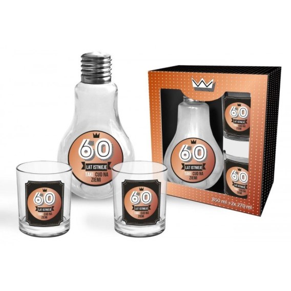 Karafka żarówka + 2 szklanki ''60'' LAT ISTNIEJE...