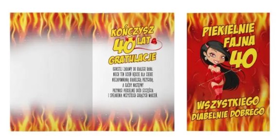 W środku wydrukowane życzenia z miejscem na dopisanie oraz podpisanie.