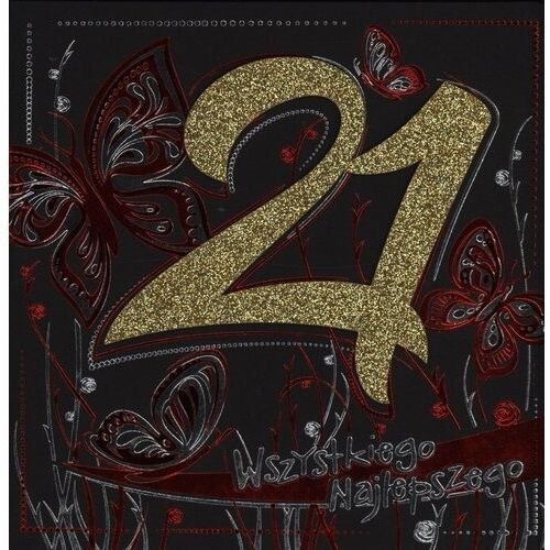 Karnet kwadrat 21 urodziny brokat mix CB09