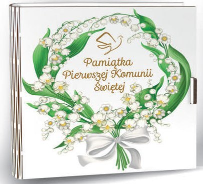 Kasetka kwadrat (życzenia + kopertka) 16 x 16cm KOMUNIA ŚW KONWALIA