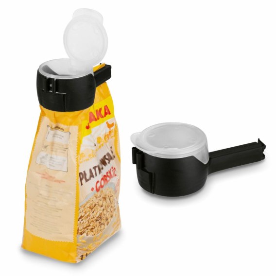 Nie musisz go używać jedynie w domowej kuchni. Choć chroni zawartość opakowania przed zwietrzeniem i zanieczyszczeniem, a jego konstrukcja powstała z bezpiecznego plastiku, nadaje się też do zamykania opakowań suchej karmy psa lub kota.