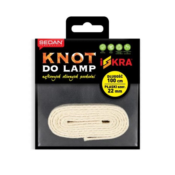 Knot do lampy naftowej, oliwnej i pochodni, płaski 22 mm/100 cm