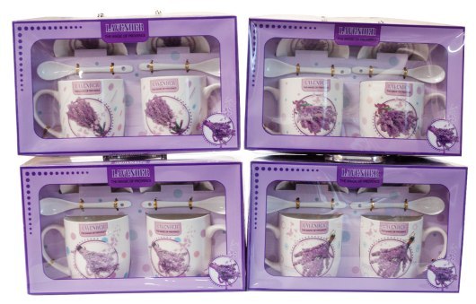 Komplet 2 kubków ceramicznych w ozdobnym opakowaniu - Lawenda