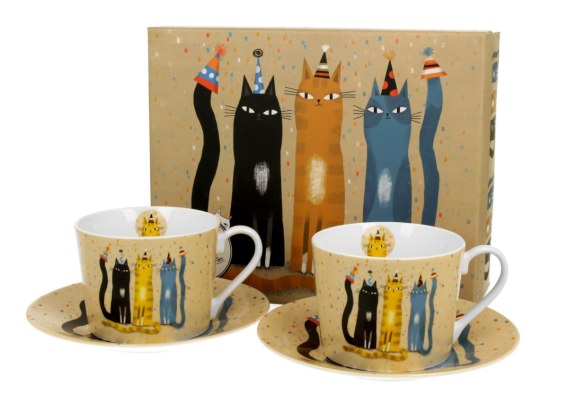 Komplet dwie filiżanki ze spodkami Koci Świat Party