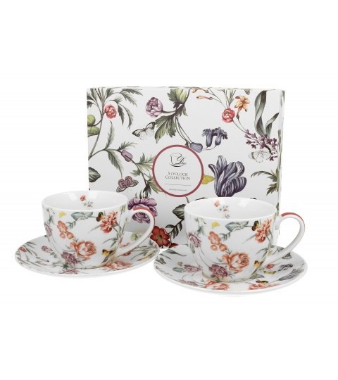 Komplet dwóch filiżanek 250 ml (po brzeg 300 ml) ze spodkami MILAGROS wchodzący w skład serii Five o'clock, wykonany z porcelany New Bone China, charakteryzującej się elegancką i naturalną kremowo - białą barwą z delikatnym połyskiem, a także wyjątkową wytrzymałością.