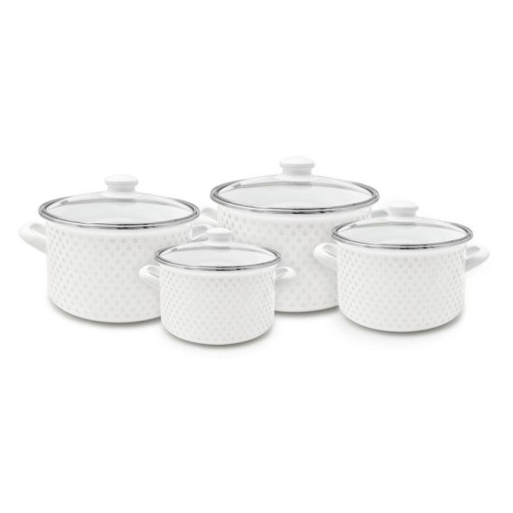 Komplet garnków z serii 3D renomowanej marki Meyerhoff wykonane zostały z wysokiej jakości stali pokrytej emaliowaną powłoką ze wzorem 3D. Idealne do codziennego gotowania pysznych posiłków. Grube, stalowe dno zapewnia równomierne rozłożenie ciepła oraz kompatybilność ze wszystkimi rodzajami kuchenek. W zestawie każdy garnek posiada szklaną pokrywę wraz z odpowietrznikiem i nienagrzewającym się się uchwytem. Komplet ten to połączenie tradycji i nowoczesności, sprawdzi się w każdej kuchni oraz uczyni gotowanie przyjemniejszym.