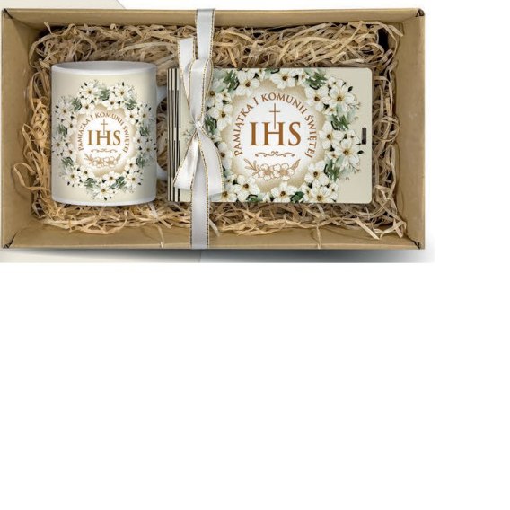 • Komplet w pudełku kubek 330ml + banknotówka 10 x 15,5cm WIANEK KOMUNIA ŚW