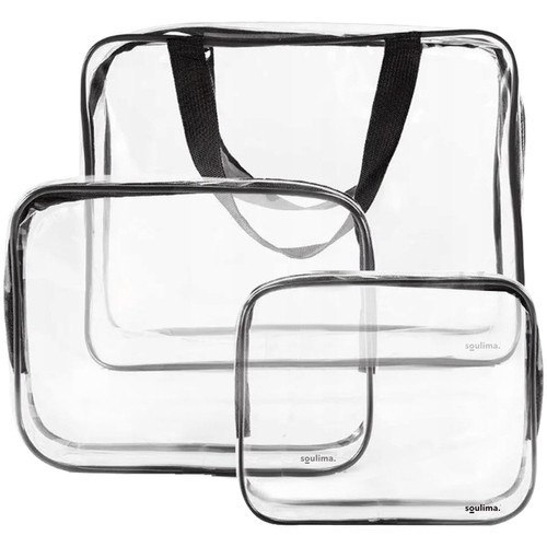 Z zestawem naszych kosmetyczek zapinanych na zamek błyskawiczny z łatwością posegregujesz wszystkie przybory toaletowe czy akcesoria do makijażu i zorganizujesz swój bagaż. Każda kosmetyczka ma inne wymiary, dzięki czemu ich przeznaczenie możesz dopasować do swoich potrzeb i lepiej wykorzystać miejsce w walizce. Pomieści wszystkie akcesoria toaletowe niezbędne w czasie wyjazdów. Całkowicie przeźroczysty materiał zapewnia wgląd do zawartości kosmetyczki bez konieczności jej otwierania, co sprawdza się szczególnie na lotniskach. Dodatkowo kosmetyczki są wodoodporne, dzięki czemu masz pewność, że ich zawartość nie wydostanie się na pozostały bagaż. Największa kosmetyczka ma wygodne paski do noszenia jak torebka. Sprawdzą się w czasie wakacyjnych wyjazdów, krótkich wycieczek, wyjść na siłownię, basen czy trening, a także do przechowywania w domu.