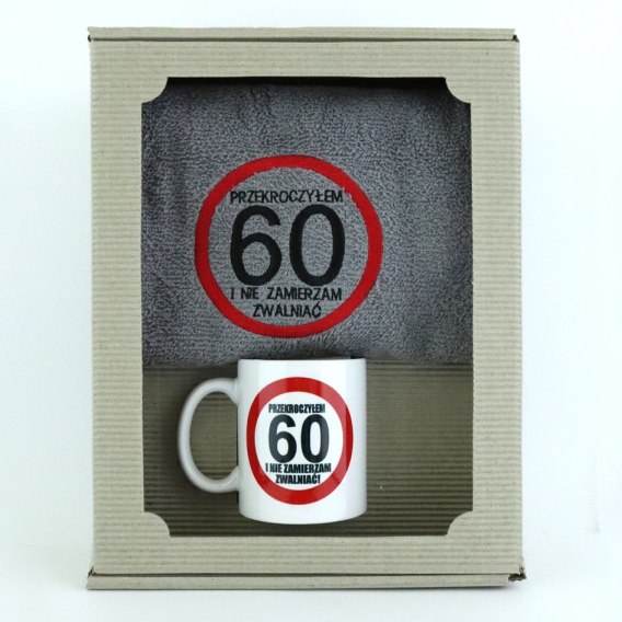 Kpl.ręcznik+kubek w pudełku ''PRZEKROCZYŁEM 60..''