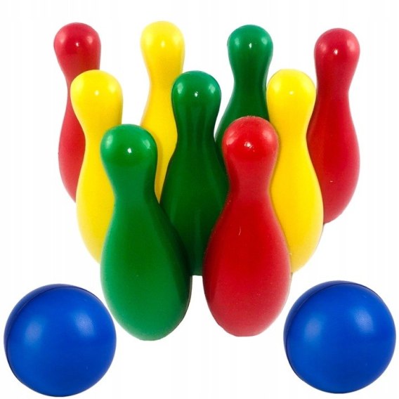 Różnokolorowe kręgle wykonane są z plastiku, co sprawia że są bardzo lekkie, łatwe do ustawienia i strącenia przez dziecko.