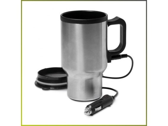 Samochodowy kubek termiczny zasilany napięciem 12 V Kubek posiada podwójne ścianki zapewniające utrzymanie wysokiej temperatury Odsuwany zaworek zabezpiecza przed rozlaniem pojemność 400 ml