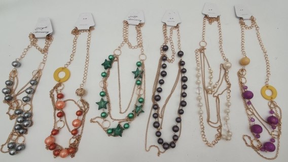 Naszyjnik metalowy złoty + kamienie 6 szt