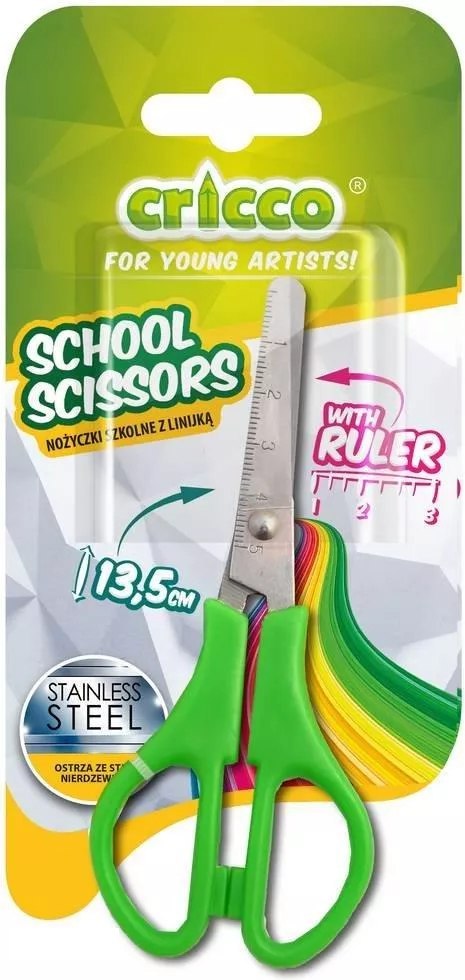 Nożyczki szkolne 13,5cm z linijką CRICCO 12szt. | CR405