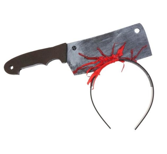Posiada piankowy toporek z sztuczną krwią.