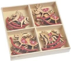Ozdoba drewniana na przylepiec 24szt. KONIK /RENIFER NA BIEGUNACH