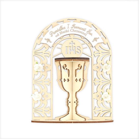 Pamiątka drewniana kielich od MATKI CHRZESTNEJ I KOMUNIA ŚW.
