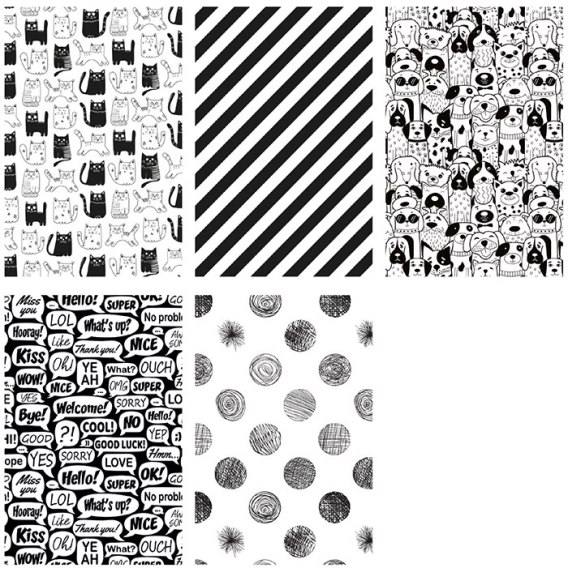 Papier ozdobny 2m 50 ark. Set 71 Czarno białe