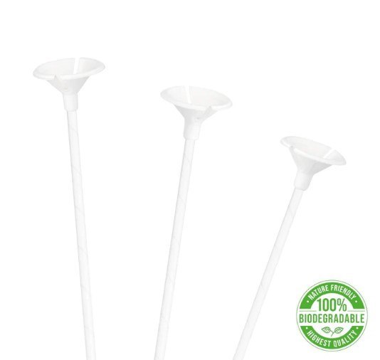 Przyjazne dla środowiska patyczki do balonów w kolorze naturalnej bieli oraz zatyczki wykonane z papieru. Opakowanie zawiera zestaw 10 szt.uk.