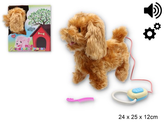 Interaktywny pies na smyczy pudelek zabawka piesek szczeka, chodzi