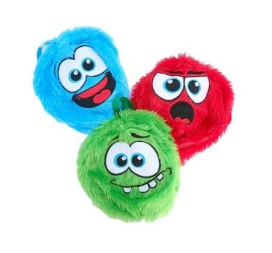 Zewnętrzna warstwa to futerkowa powłoka z nadrukiem emotikonka. Charakterystyczna minka dodatkowo stymuluje dziecko i zachęca do zabawy.