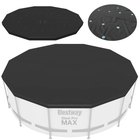 Pokrywa ochronna basenu, zapewnia ochronę basenu przed owadami, ptakami, liśćmi i małym deszczem. Jest dodatkowym zabezpieczeniem przed przypadkowym wpadnięciem do basenu dzieci. Pokrywa stanowi dodatkową izolację termiczną wody w basenie. Dzięki linkom umożliwiającym jej umocowanie, wiatr jej nie zerwie a otwory odpływowe skutecznie odprowadzą nadmiar zbierającej się wody. Wykonanie pokrywy z bardzo trwałego i mocnego materiału pozwoli na używanie jej przez wiele sezonów.