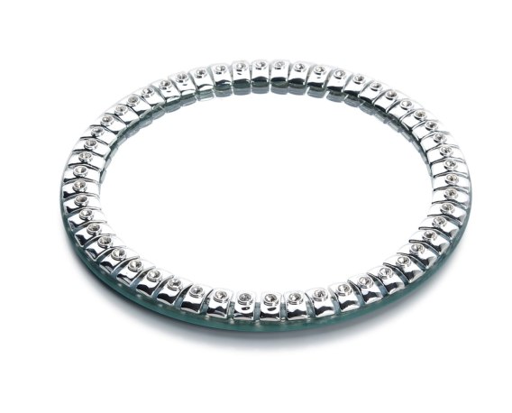 Podstawka dekoracyjna, okrągła dekoracja ze zdobieniem na brzegu, środek lustrzany. Idealnie posłuży