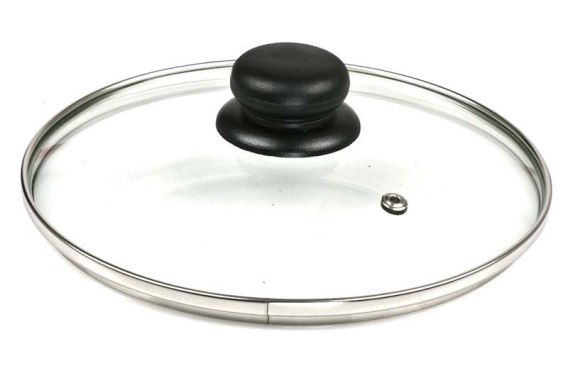 Uniwersalna pokrywa szklana o średnicy 24 cm do naczyń, garnków, patelni, wykonana ze szkła żaroodpornego.