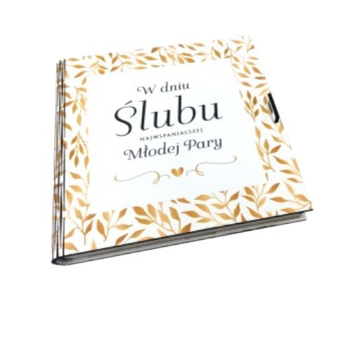 Pudełko okolicznościowe na pieniądze - kwadrat. Kolorowy nadruk z motywem Złotych Liści. W środku życzenia i miejsce na pieniądze dla Młodej Pary. Pakowane w folię.