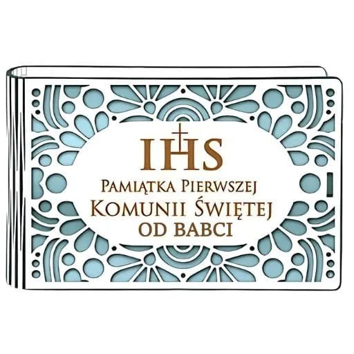 Pudełko na pieniądze banknotówka KOMUNIA - od BABCI - Ażur 3302A-KOM3N-B